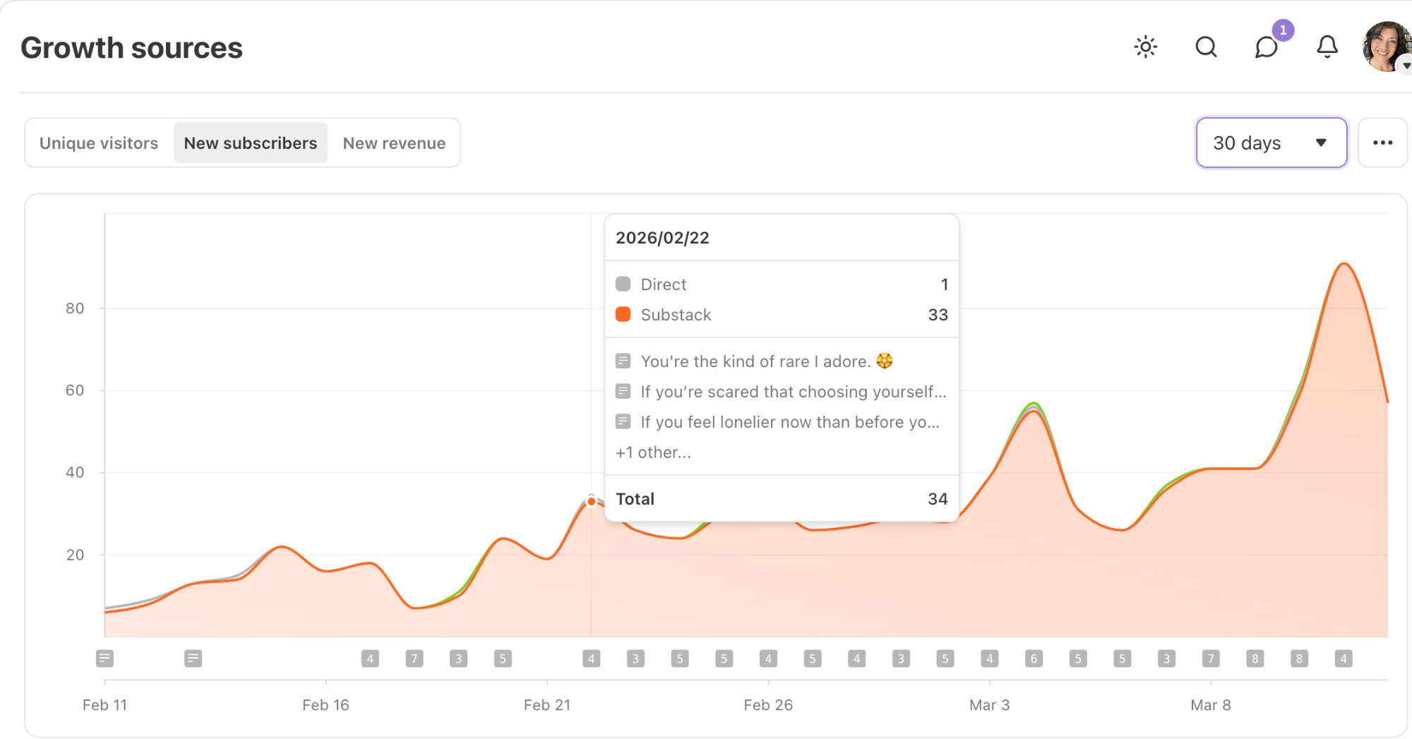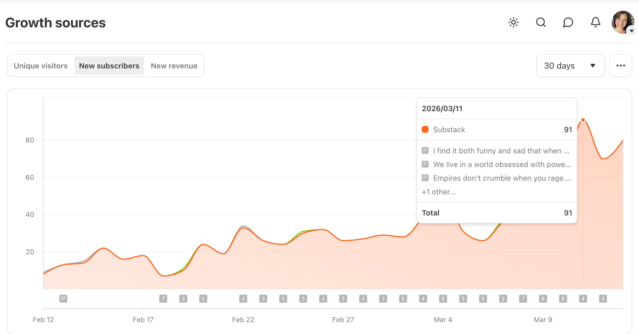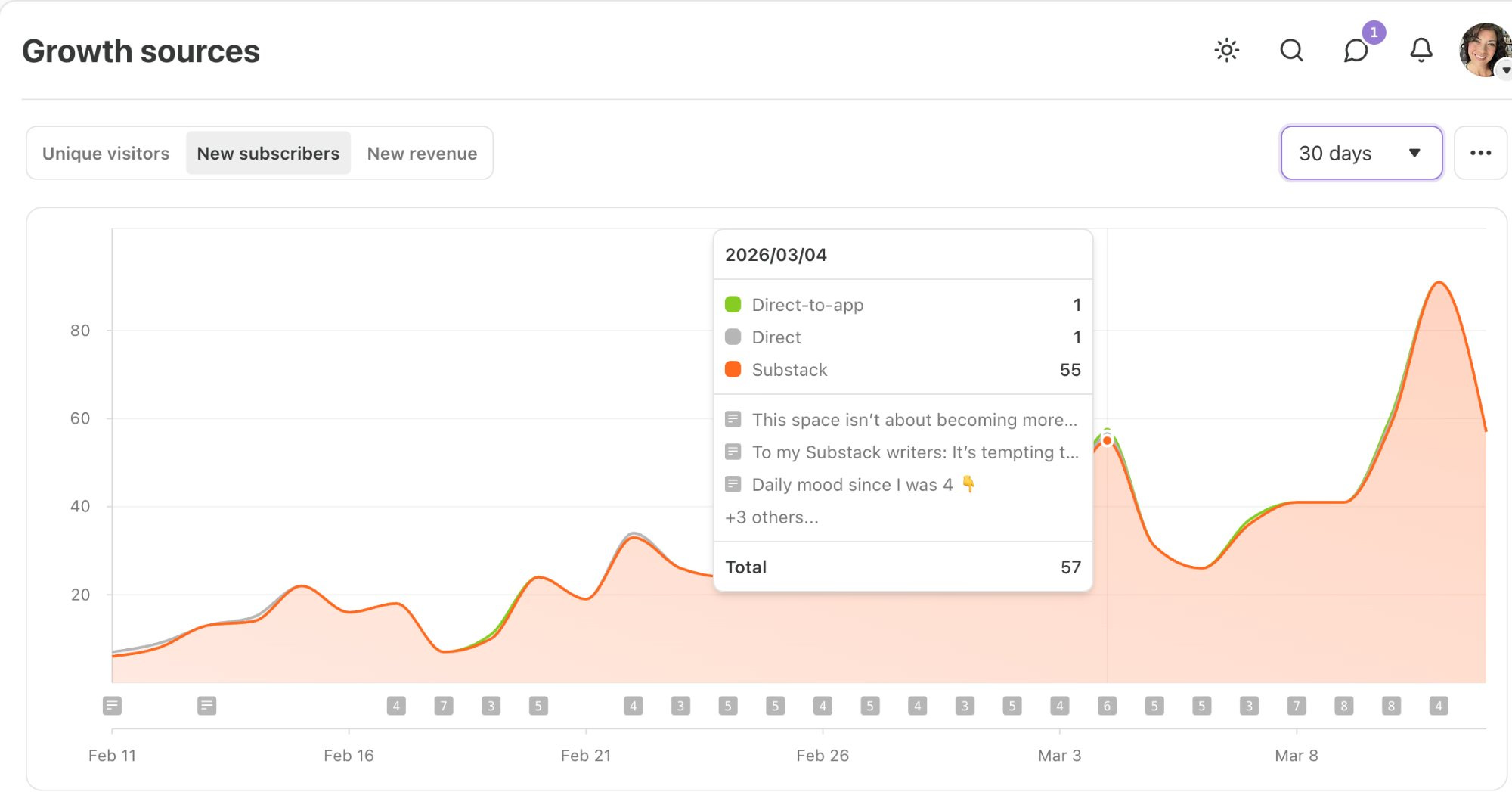 By Feb 15, just four days later, my daily subscribers more than doubled.